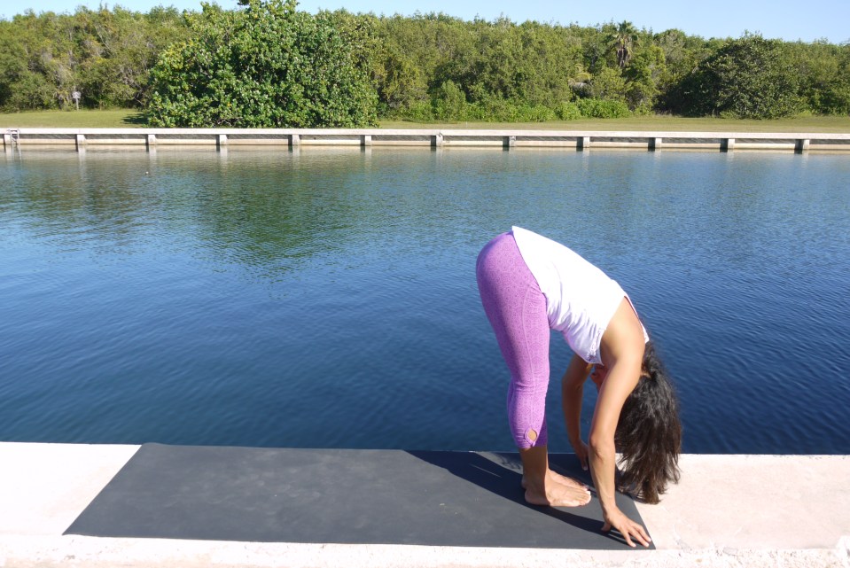Exhale, release back into Uttinasana