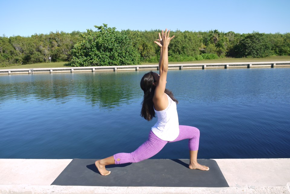 Inhale, reach your arms up and feel the long stretch along the torso.