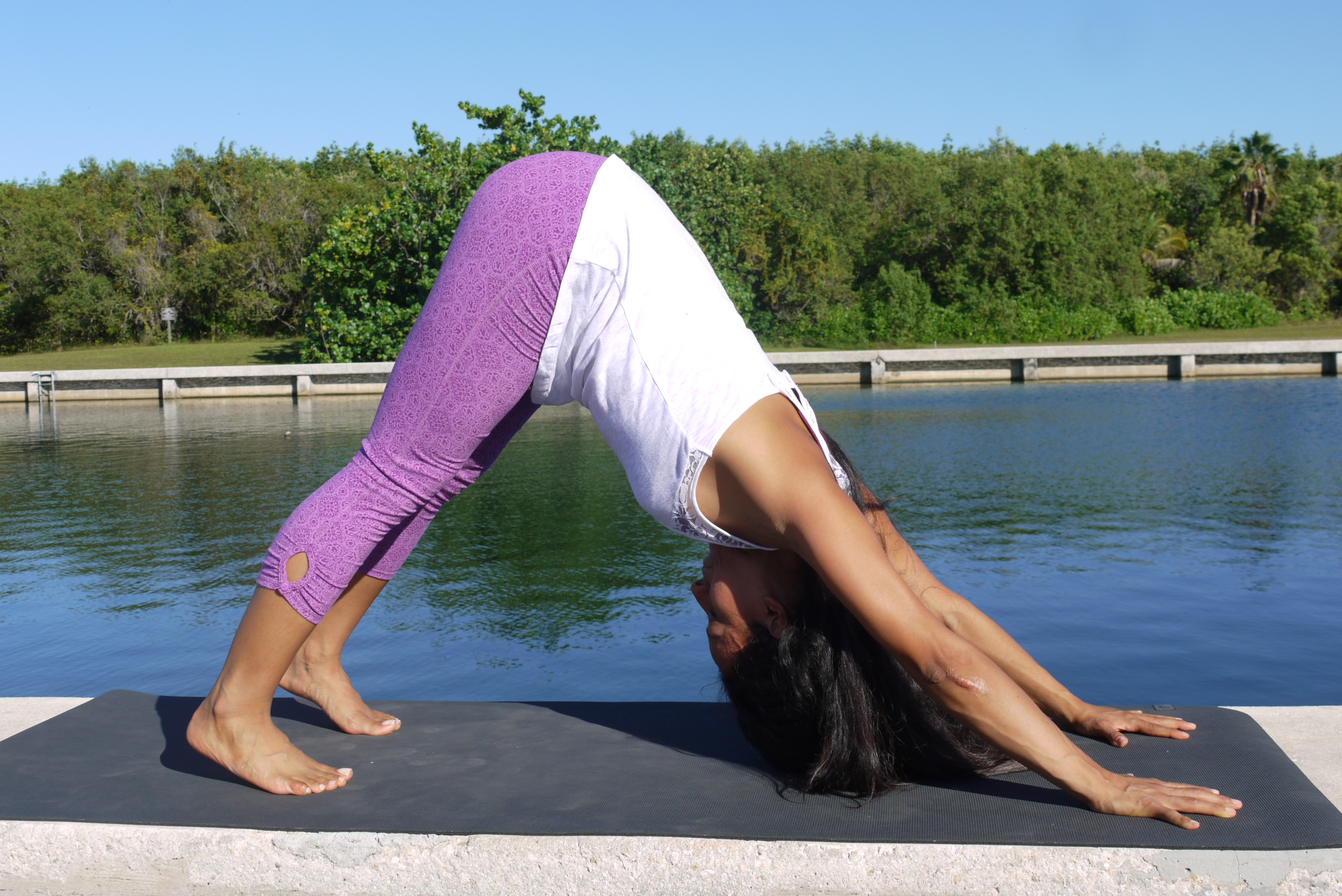 Adho Muka Svansana: Pressing your heart to your thighs come into Downward Facing Dog.