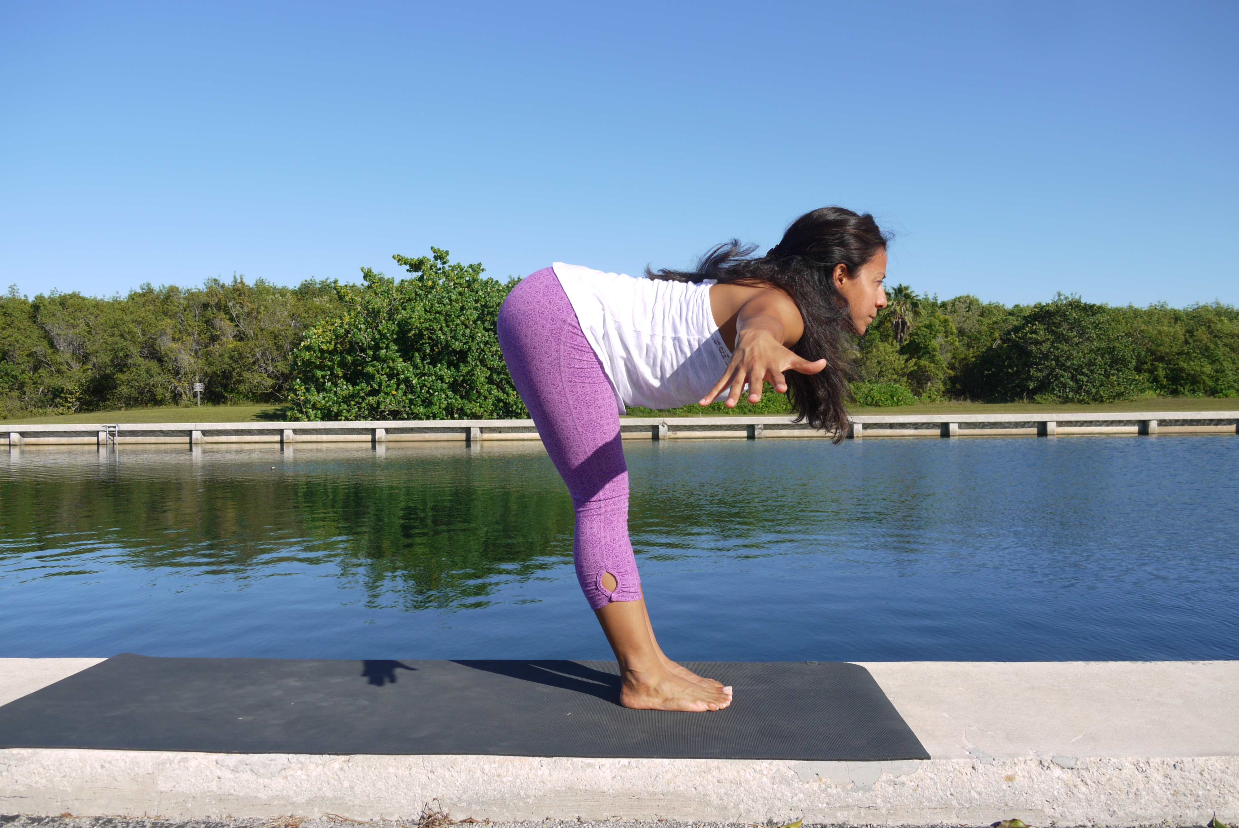 Inhale reach the arms up maintaining proper alignment of the spine and heart lifted