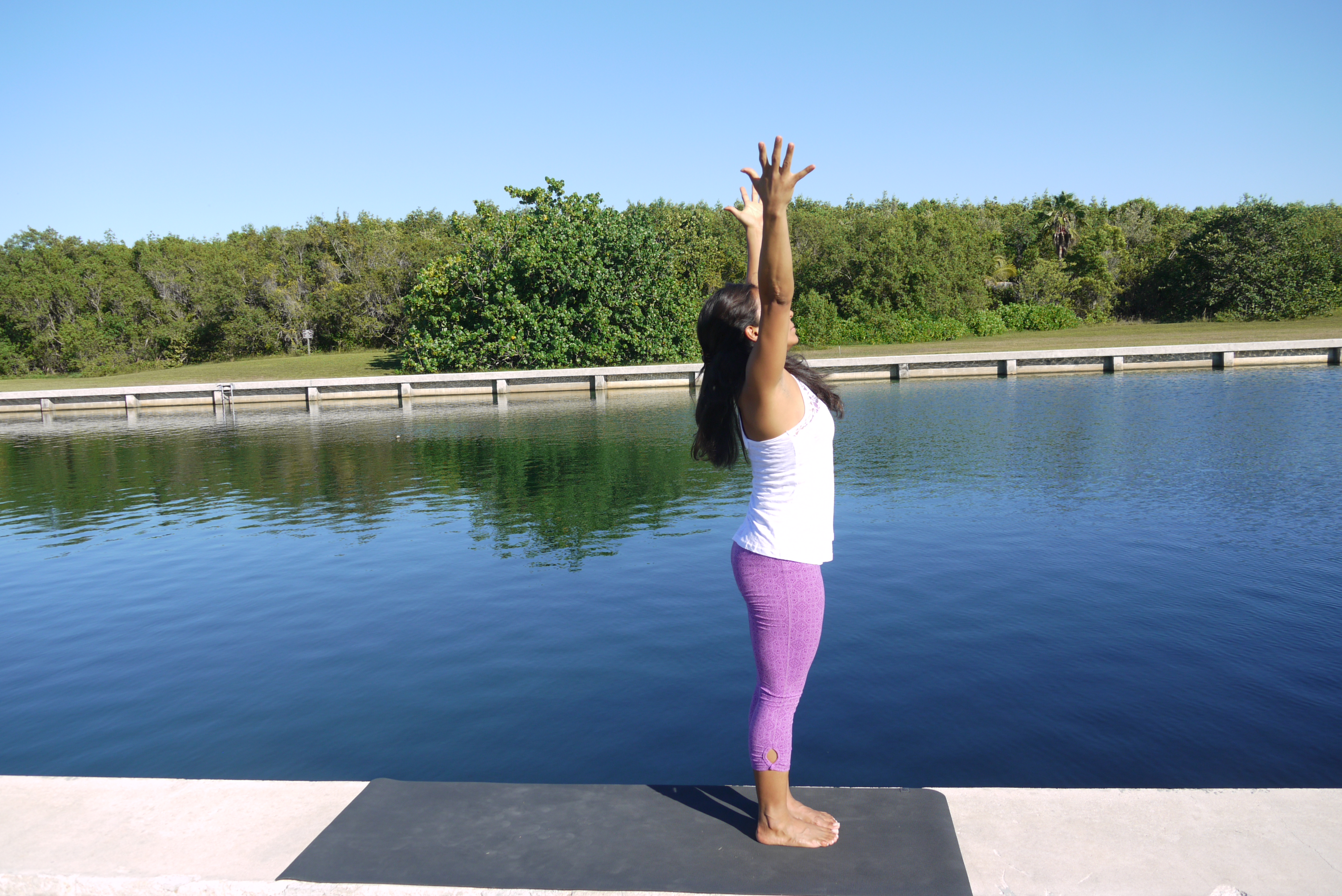 Urdhva Hastasana: Inhale extednd your body long and reach for your hands